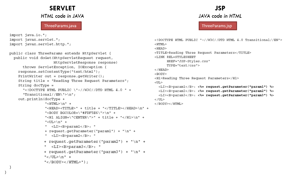 아래는 3개의 인자를 Client로부터 입력받아서 같은 결과를 응답하는 서블릿과 JSP 코드입니다.