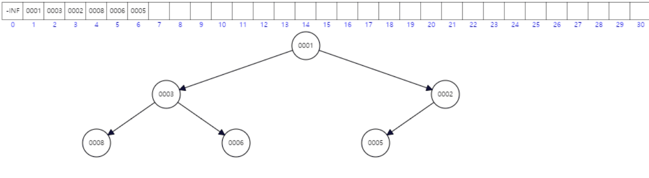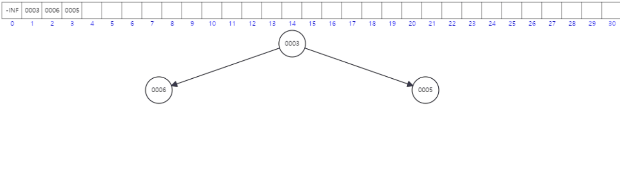 3번째로 들어온 3이 부모 값인 5보다 작으므로 위치를 교환합니다.