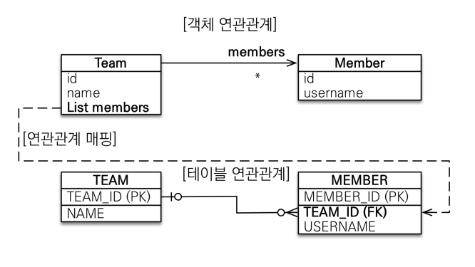 - 객체의 경우에는 참조용 필드가 있는 경우에만 연관된 객체를 조회할 수 있습니다.